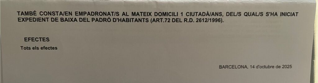 Es decir, si yo vivo con un amiga y decido mudarme y me empadrono en otro piso en Barcelona, ese tramite impacta enseguida. Si mi caso es otro, y decido volverme a mi país por ej, puedo desempadronarme para que quede registrado que no voy a estar más aquí.