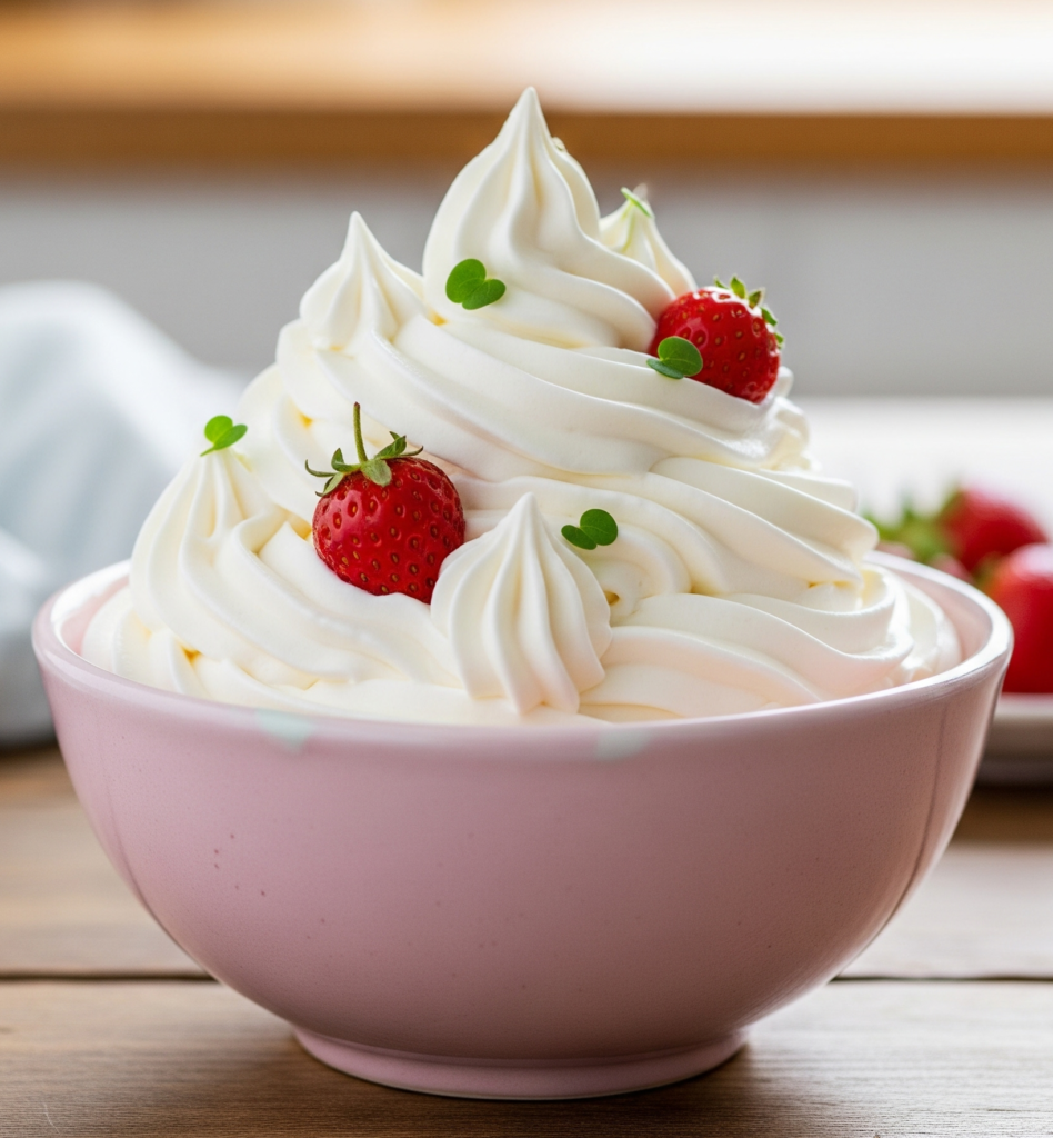 - Batir agregando endulzante a gusto hasta que esté montada.
