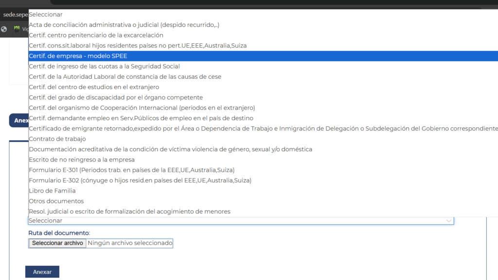 - Demandante de empleo, que lo podes subir bajo «Otros documentos»